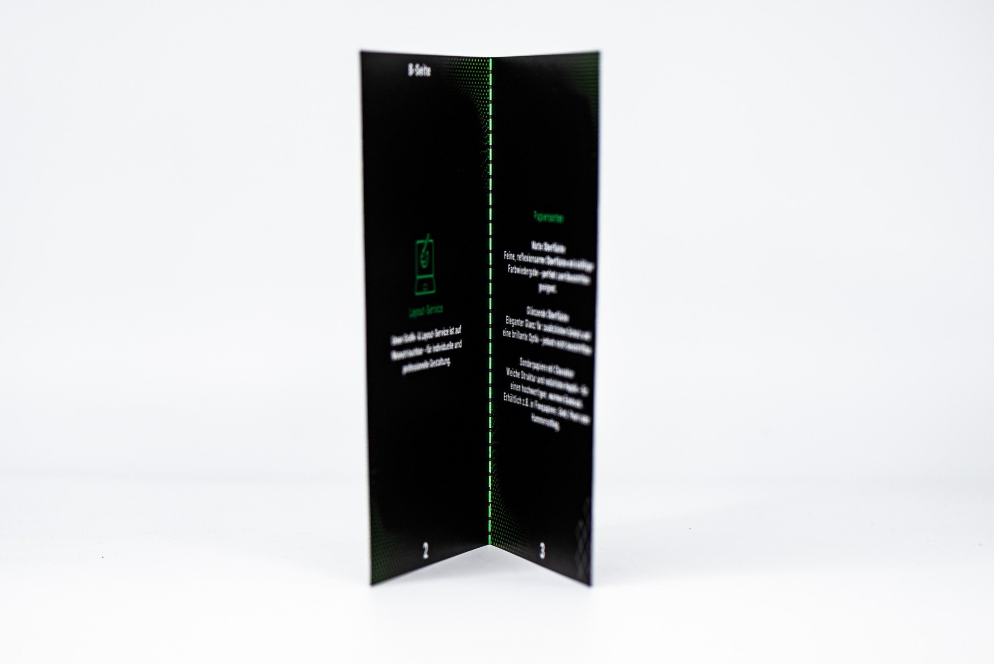 • Individuelle Veredelungen: Auf Wunsch sind Veredelungen wie UV-Lack, Folienprägung, partielle Lackierungen oder exklusive Papiere möglich, um Ihrem Faltblatt eine besonders hochwertige Optik und Haptik zu verleihen.