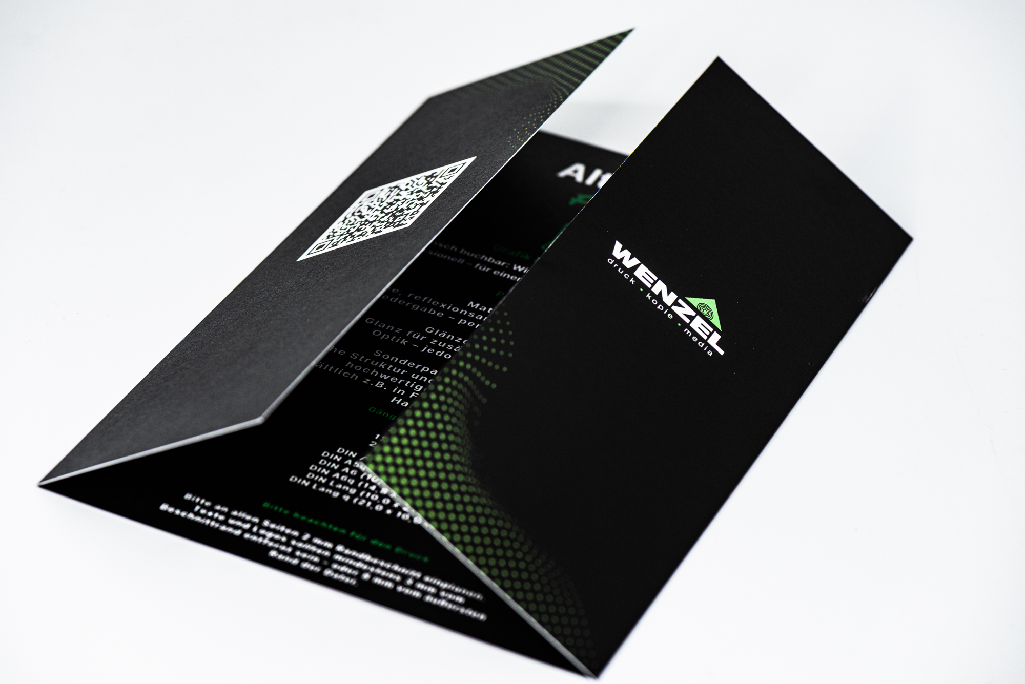 Der Fensterfalz (auch Altarfalz genannt) ist eine besondere Falztechnik, bei der das Druckprodukt so gefaltet wird, dass beim Öffnen ein „Fenster“ entsteht. Diese elegante Faltung eignet sich perfekt für: