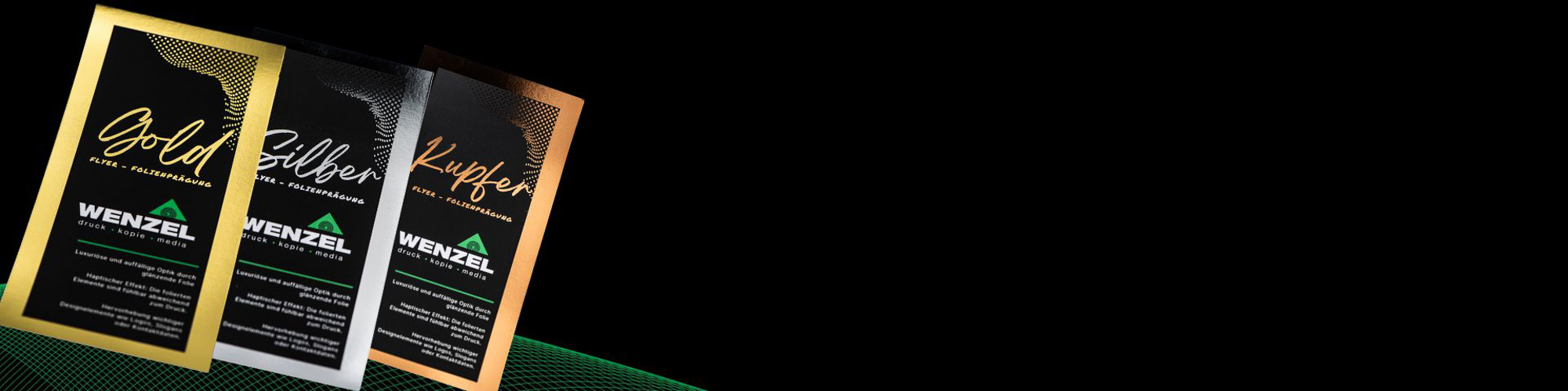 Flyer mit Heißfolienprägung drucken bei WENZEL – Ihr Partner in München für hochwertige Druckprodukte mit Glanz, Präzision und Charakter.