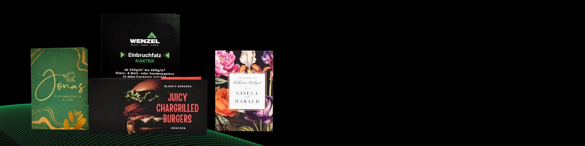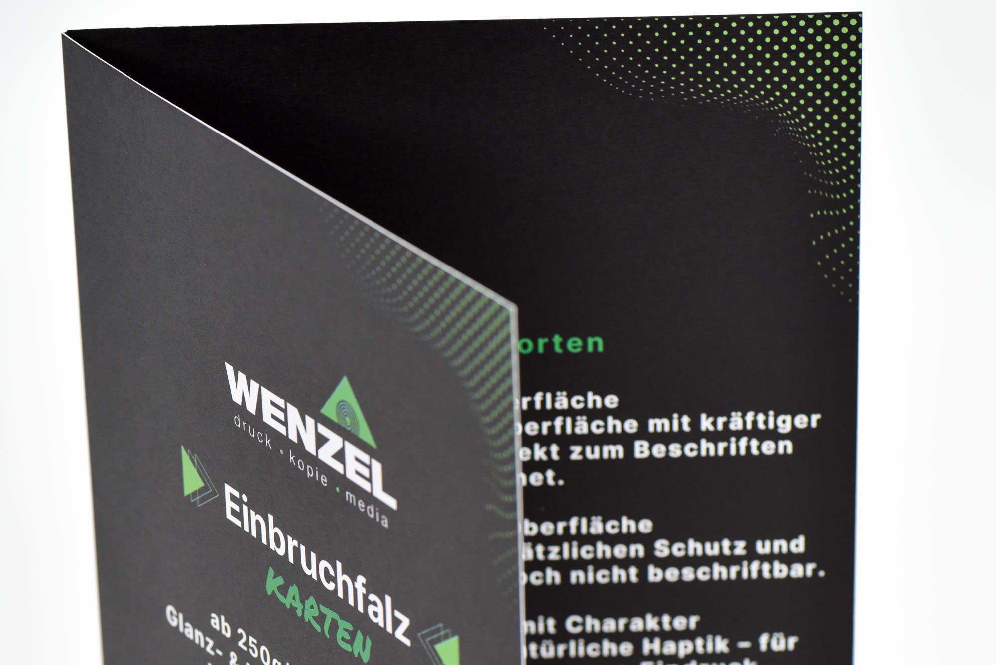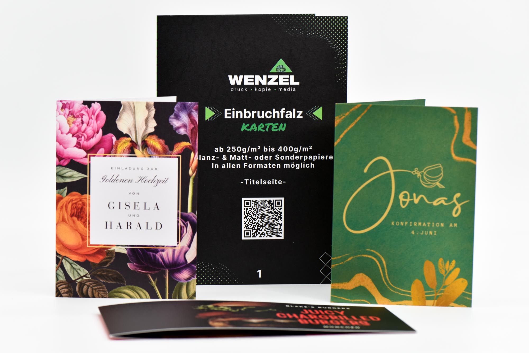 Bei WENZEL in München drucken wir deine Klappkarten so, wie du sie brauchst: mit sauberen Falzen, kräftigen Farben, stabilen Papieren und auf Wunsch mit edlen Sonderveredelungen. Du lieferst uns das fertige Design – oder wir übernehmen die Gestaltung für dich.